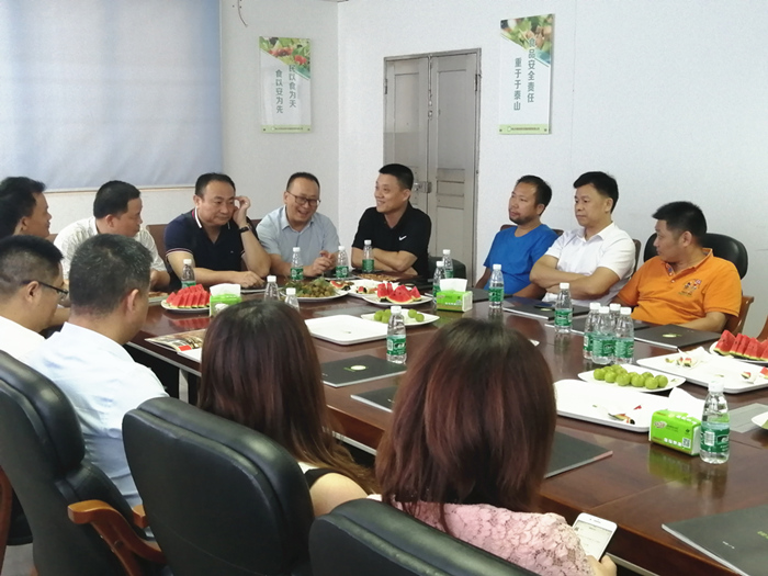2019年7月5日15:30,佛山市南海区农产品商会部分会员及商会党支部部分党员在商会党支部书记、7月轮值小组组长--佛山市朝成饮食管理服务有限公司张朝生总经理的带领下,发挥党建引领作用,组织参观了南海区农产品商会新进理事单位--佛山市绿食源农产品有限公司,并进行行业交流及资源对接活动。