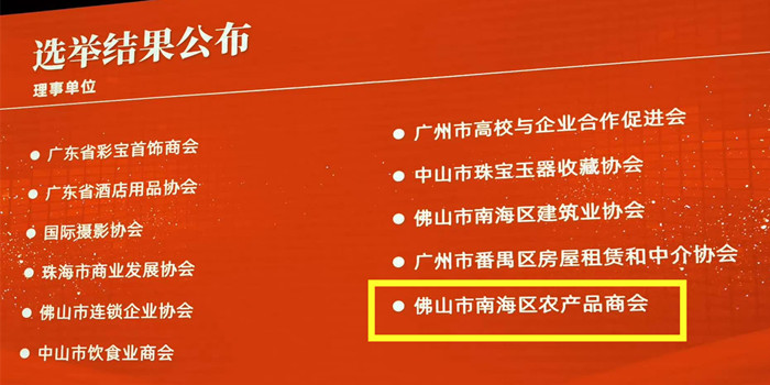 2020年10月16日,佛山市南海区农产品商会在广东省行业协会联合会任第二届会员大会中被选举为理事单位!